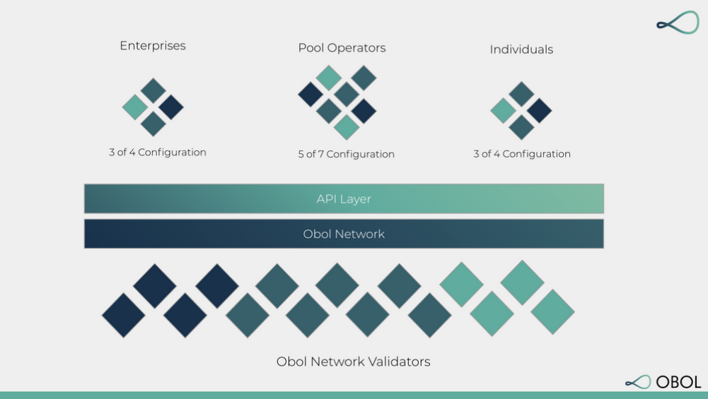 Obol as a layer is focused on scaling main chain staking by providing permissionless access to Distributed Validators (DV's). We believe that DV's will and should make up a large portion of mainnet validator configurations. In preparation for the first wave of adoption the network currently utilizes a middleware implementation of Distributed Validator Technology (DVT), to enable the operation of distributed validator clusters that can preserve validators current client and remote signing configurations.